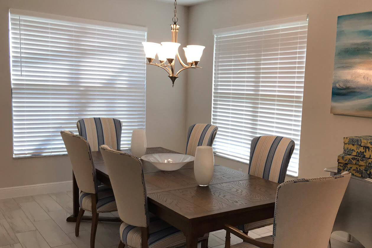 A timeless choice, horizontal blinds offer versatility with various materials to suit different room types. Choose Real Wood for a classic touch, available in different tints to match room furniture. Opt for Fauxwood for a more affordable option, ideal for high-moisture areas.