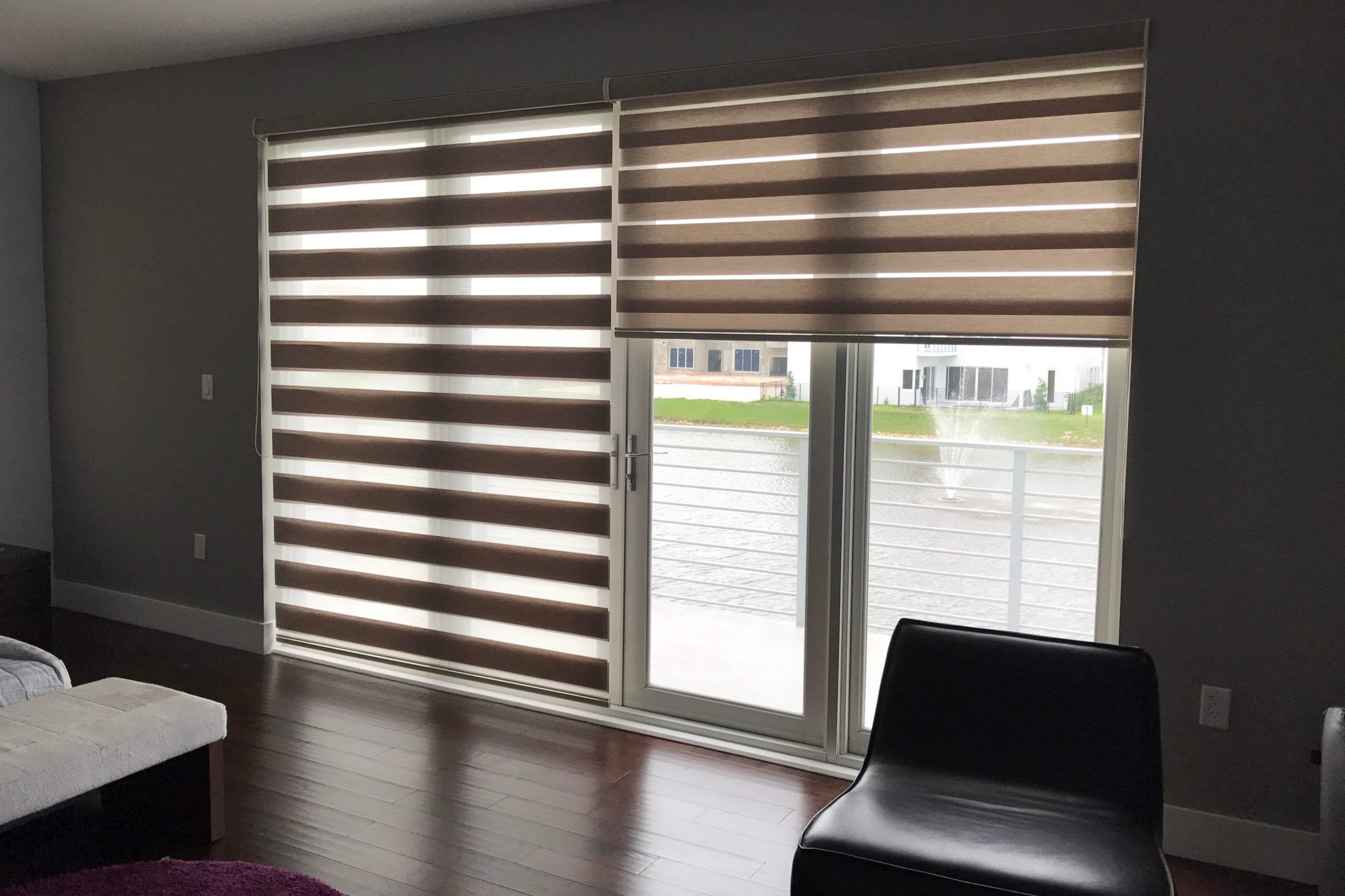 Functional and stylish, illusion shades provide swift transitions between room brightness and total privacy. Stripes on the shades are available in various sizes, colors, and light-filtering options.